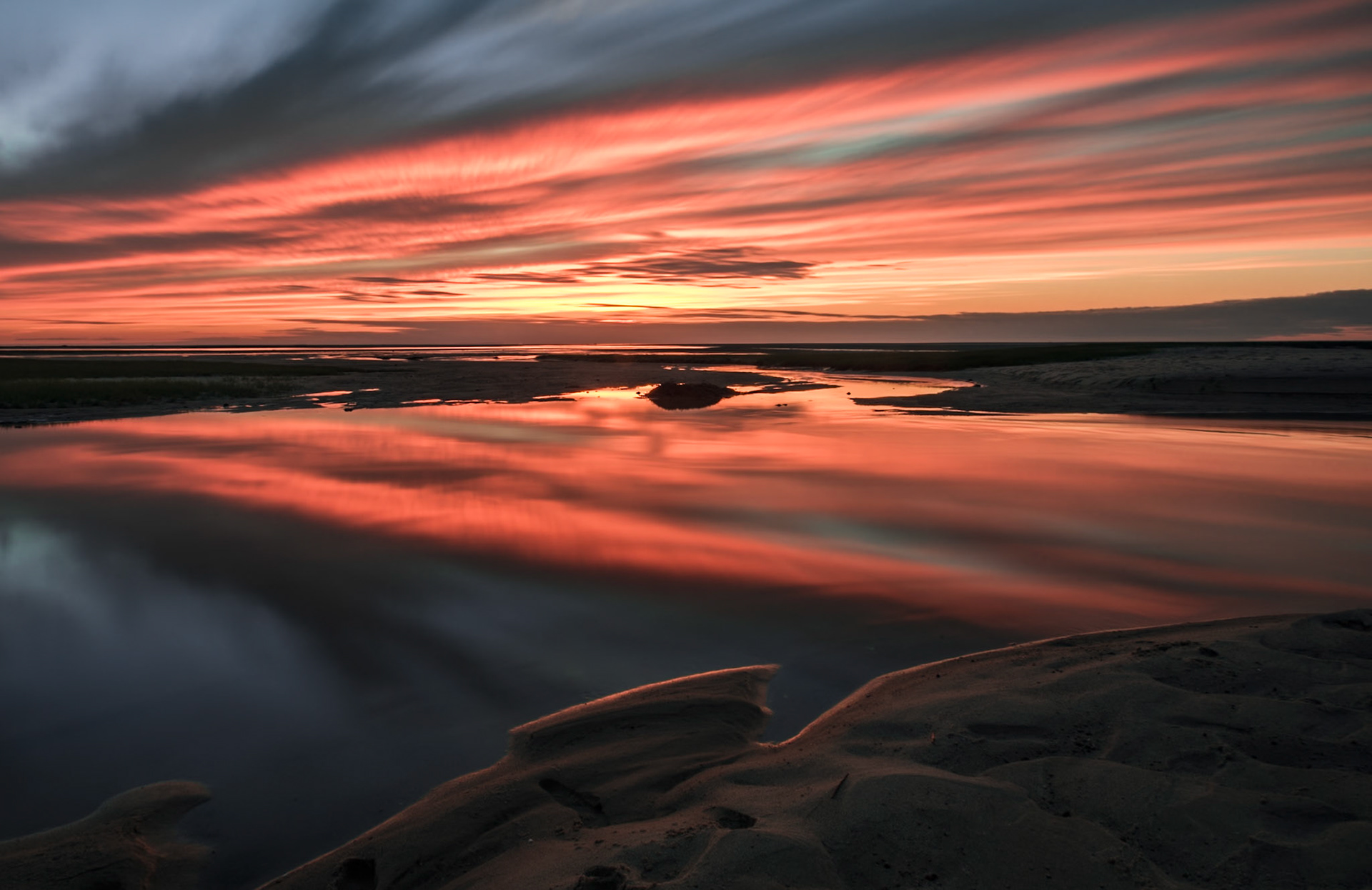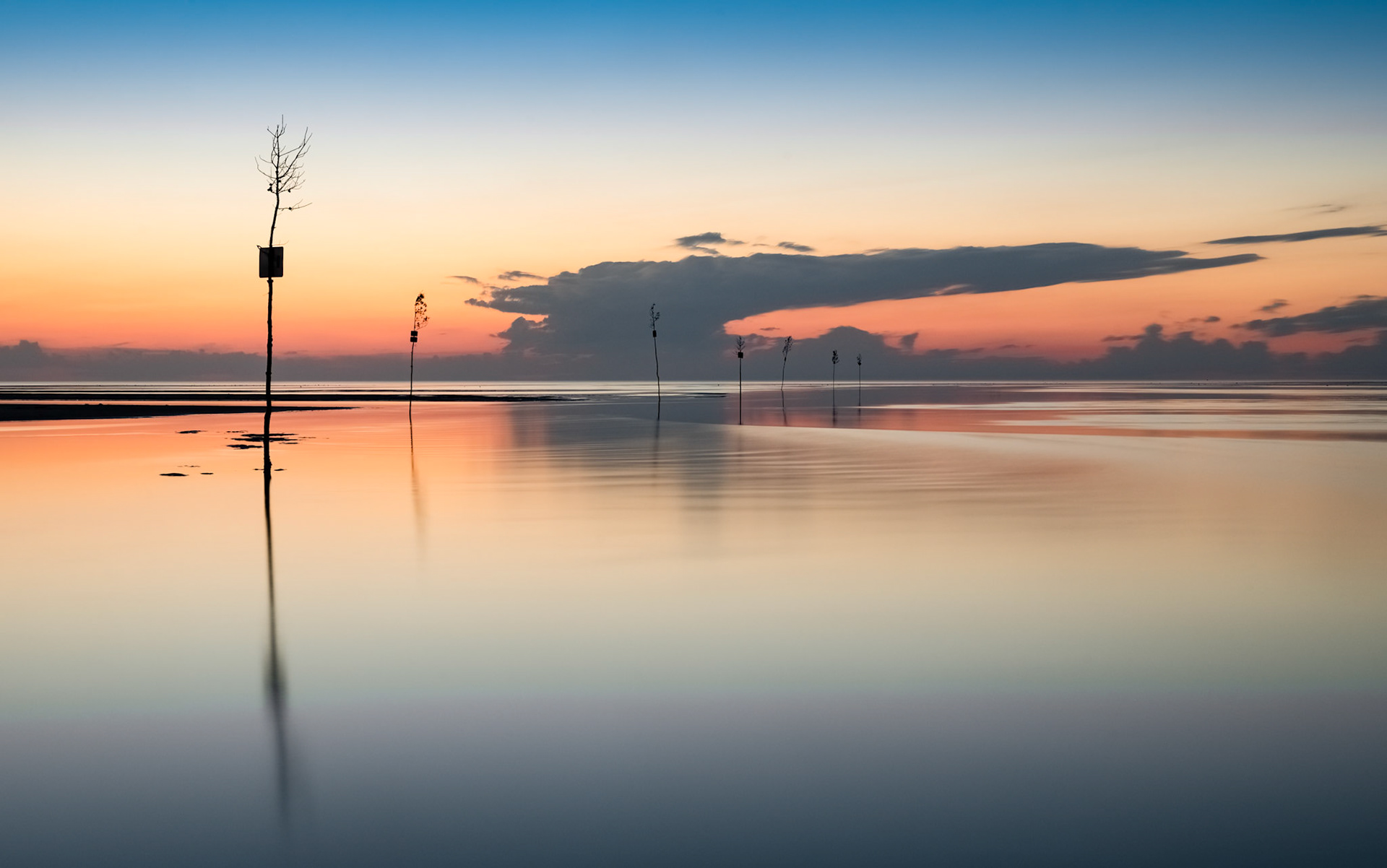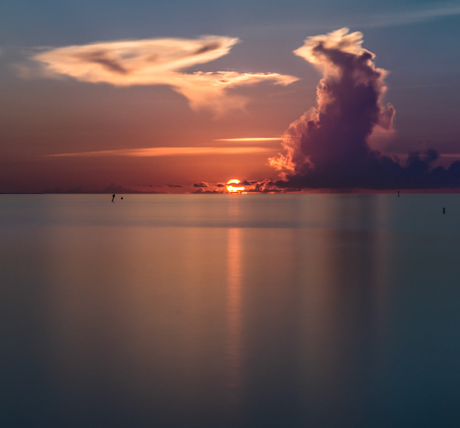 The resulting images give the viewer pause. Capturing the element of time adds intrigue, serenity and an otherworldly feeling to photos, because clouds start moving and form silky bands in the sky, water smooths over to a mirror finish and people, cars, boats, airplanes and birds disappear, because their presence of a few seconds doesn’t register in an exposure of several minutes.