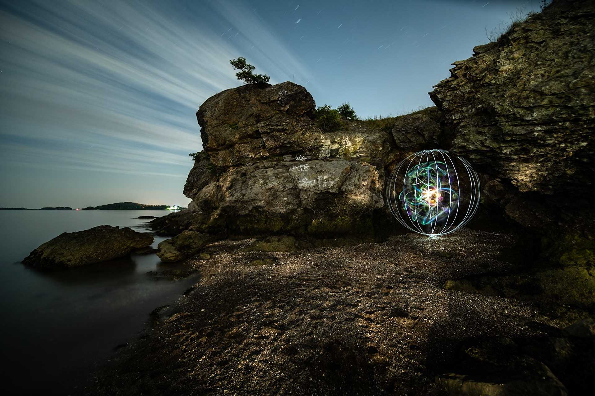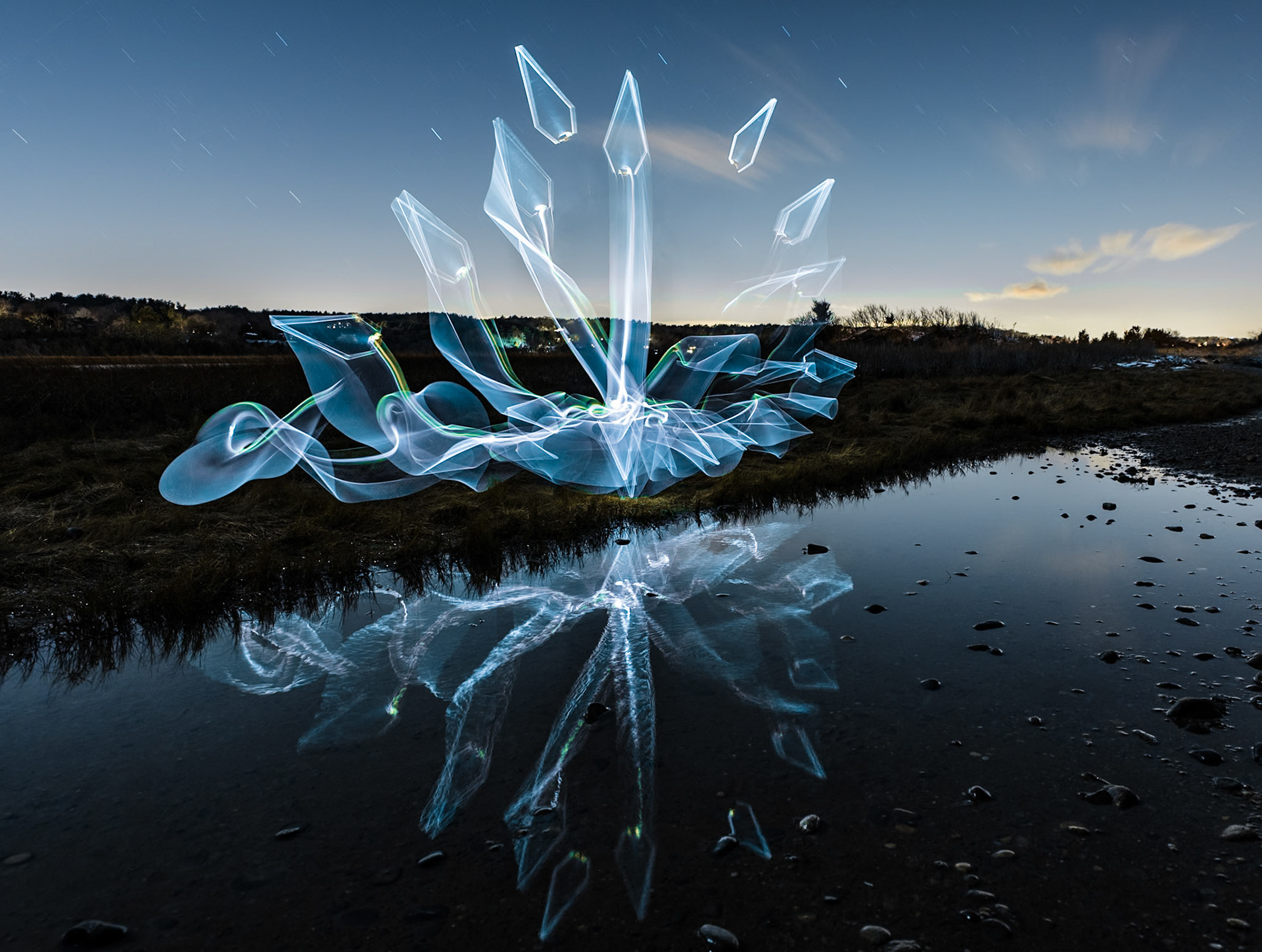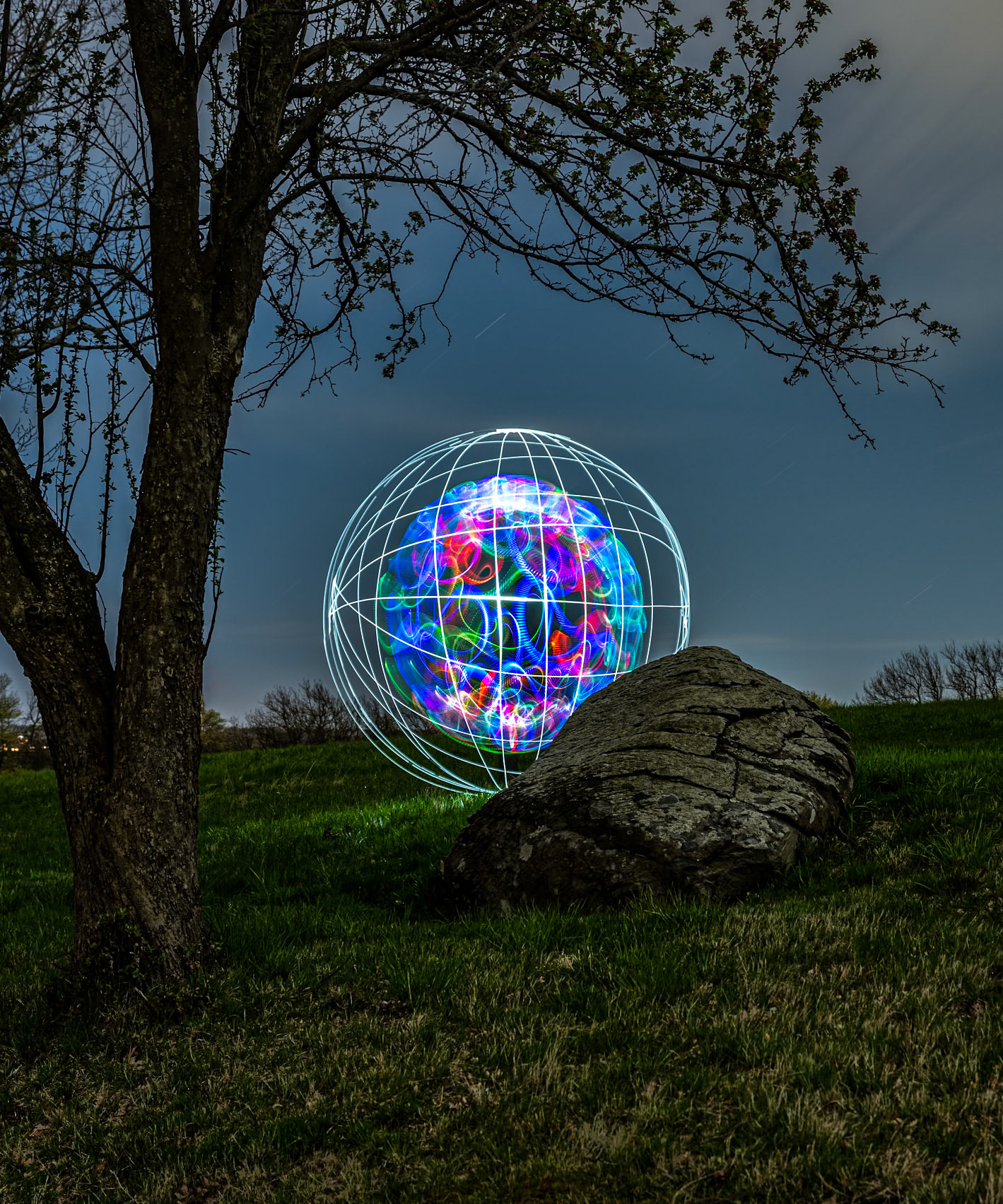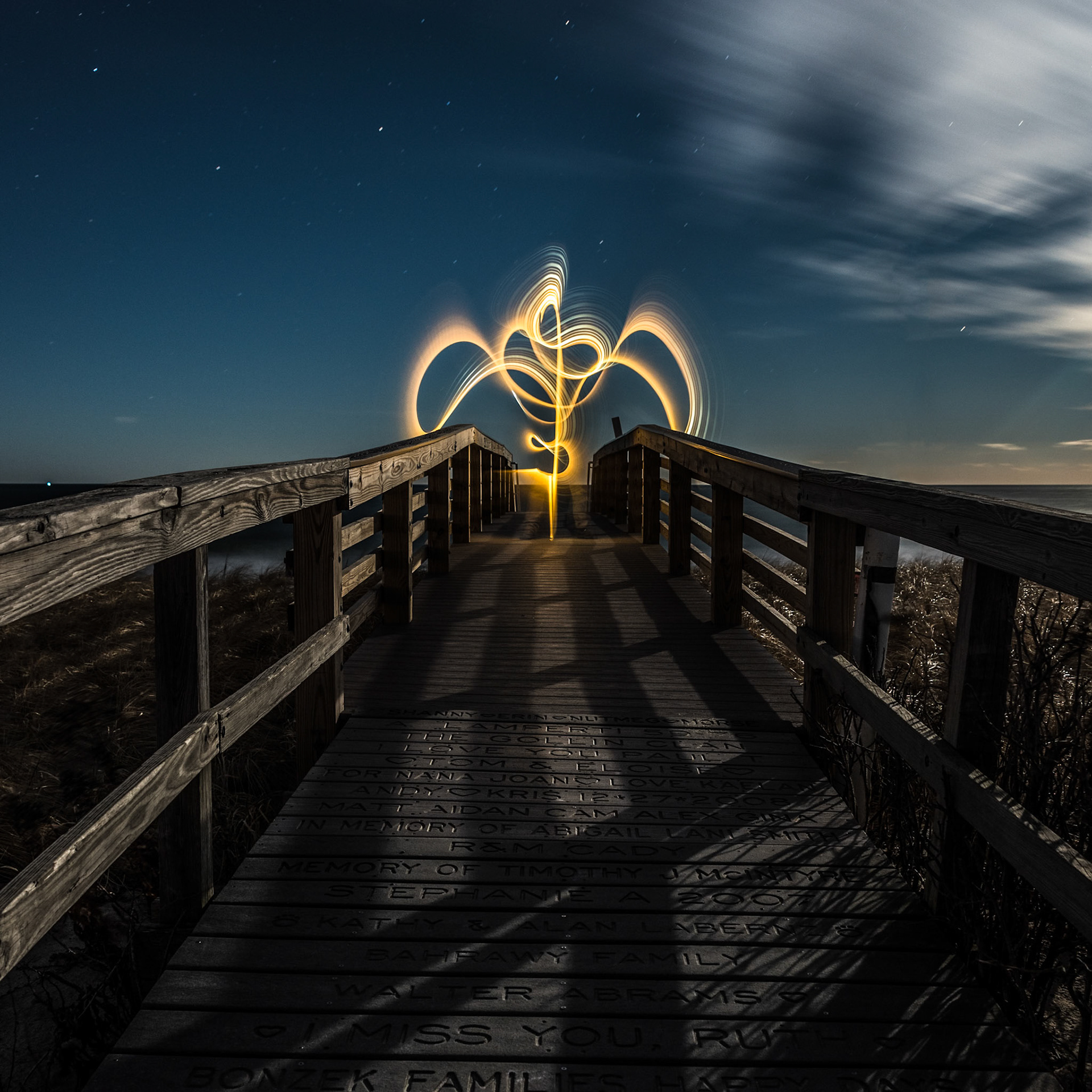 Light drawing (often called light painting) is a long exposure night photography technique where the light source is visible by the camera, and it creates the objects you see. The person doing this disappears when dressed in black. Any tool that lights up can be used, be that a $1 light stick or a $300 specialized tool. I distinguish this from >>light painting, where the light tool itself is not visible. Light drawing is perhaps the only photography discipline where we do not just photograph what is already there, but rather create the main object in the photo. Every single frame is unique, because you can never exactly replicate what you just did.
