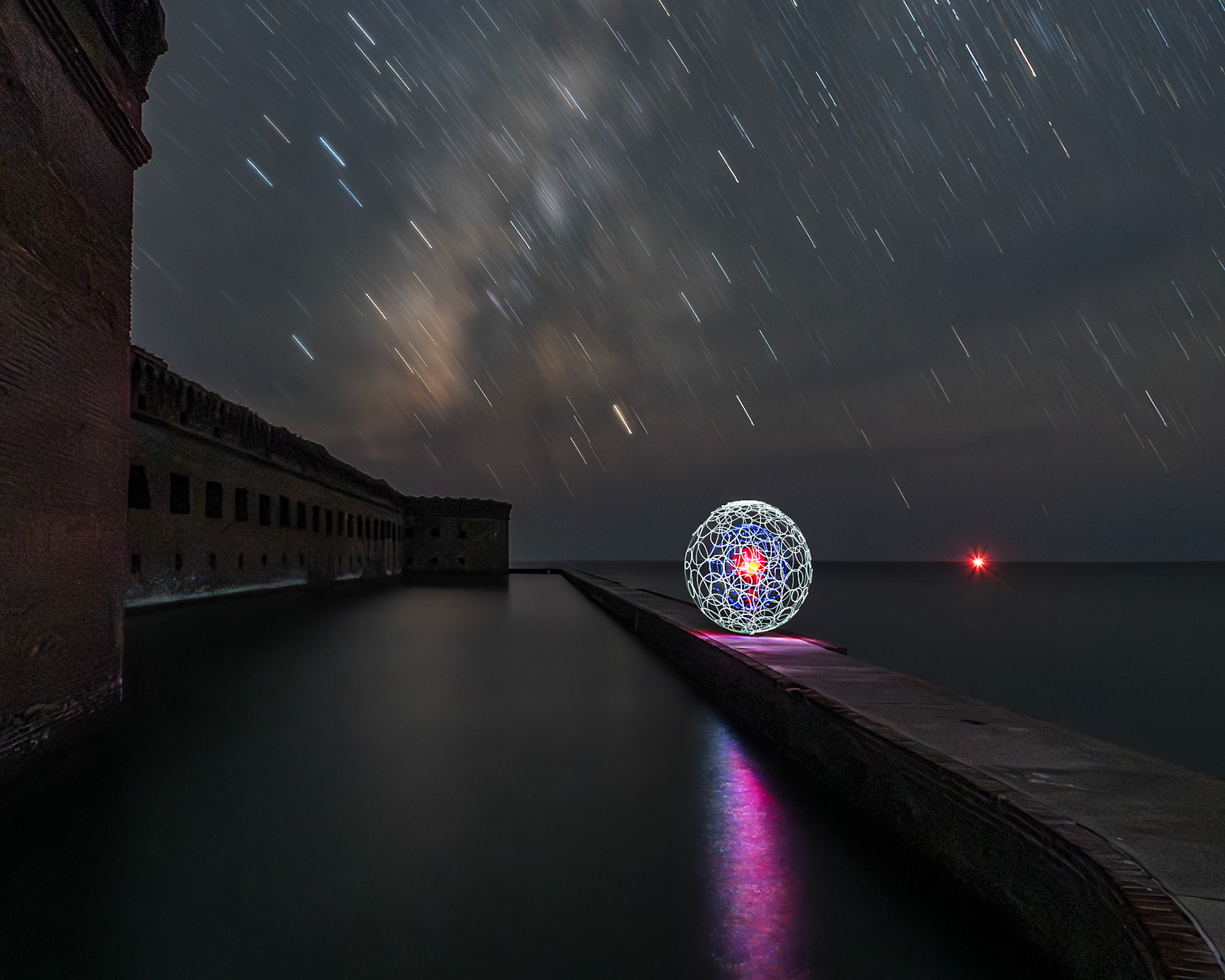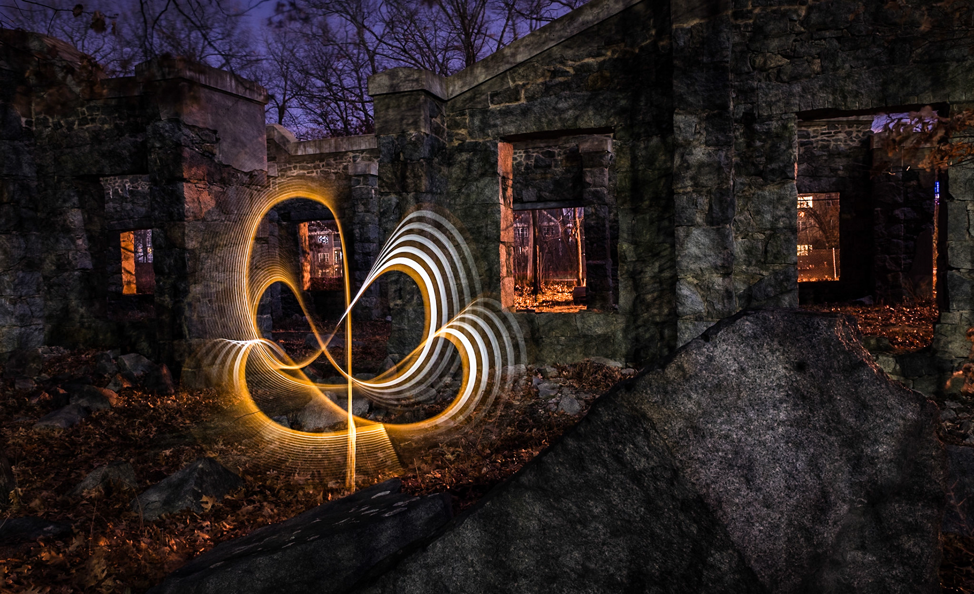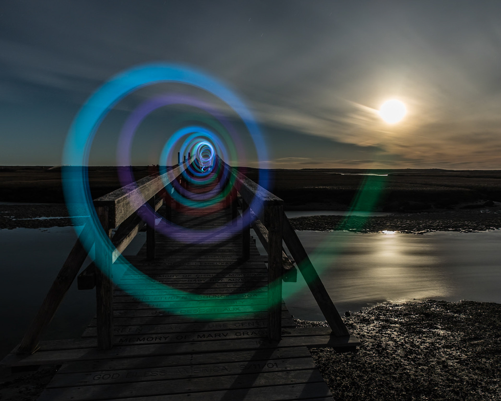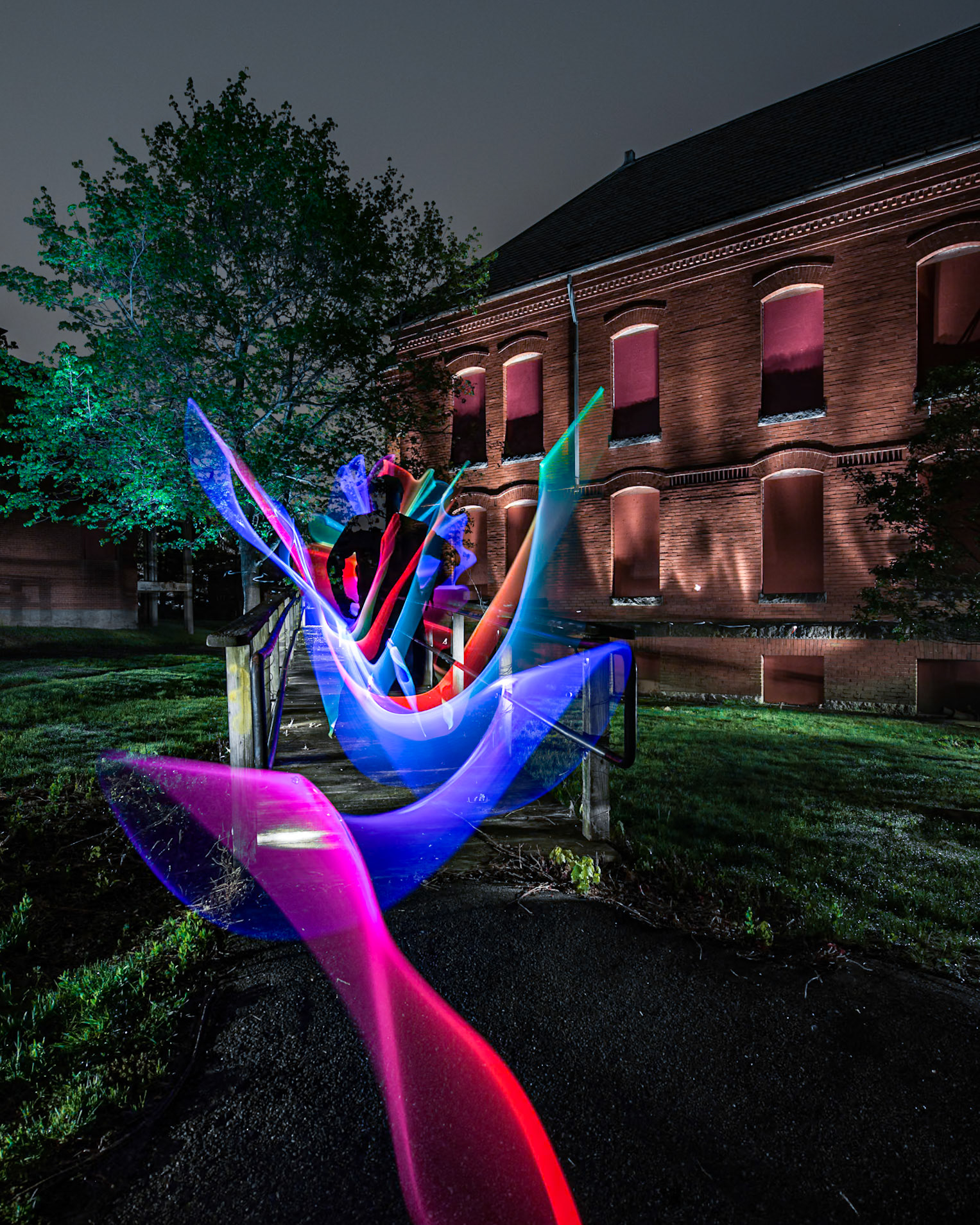 Light drawing (often called light painting) is a long exposure night photography technique where the light source is visible by the camera, and it creates the objects you see. The person doing this disappears when dressed in black. Any tool that lights up can be used, be that a $1 light stick or a $300 specialized tool. I distinguish this from >>light painting, where the light tool itself is not visible. Light drawing is perhaps the only photography discipline where we do not just photograph what is already there, but rather create the main object in the photo. Every single frame is unique, because you can never exactly replicate what you just did.