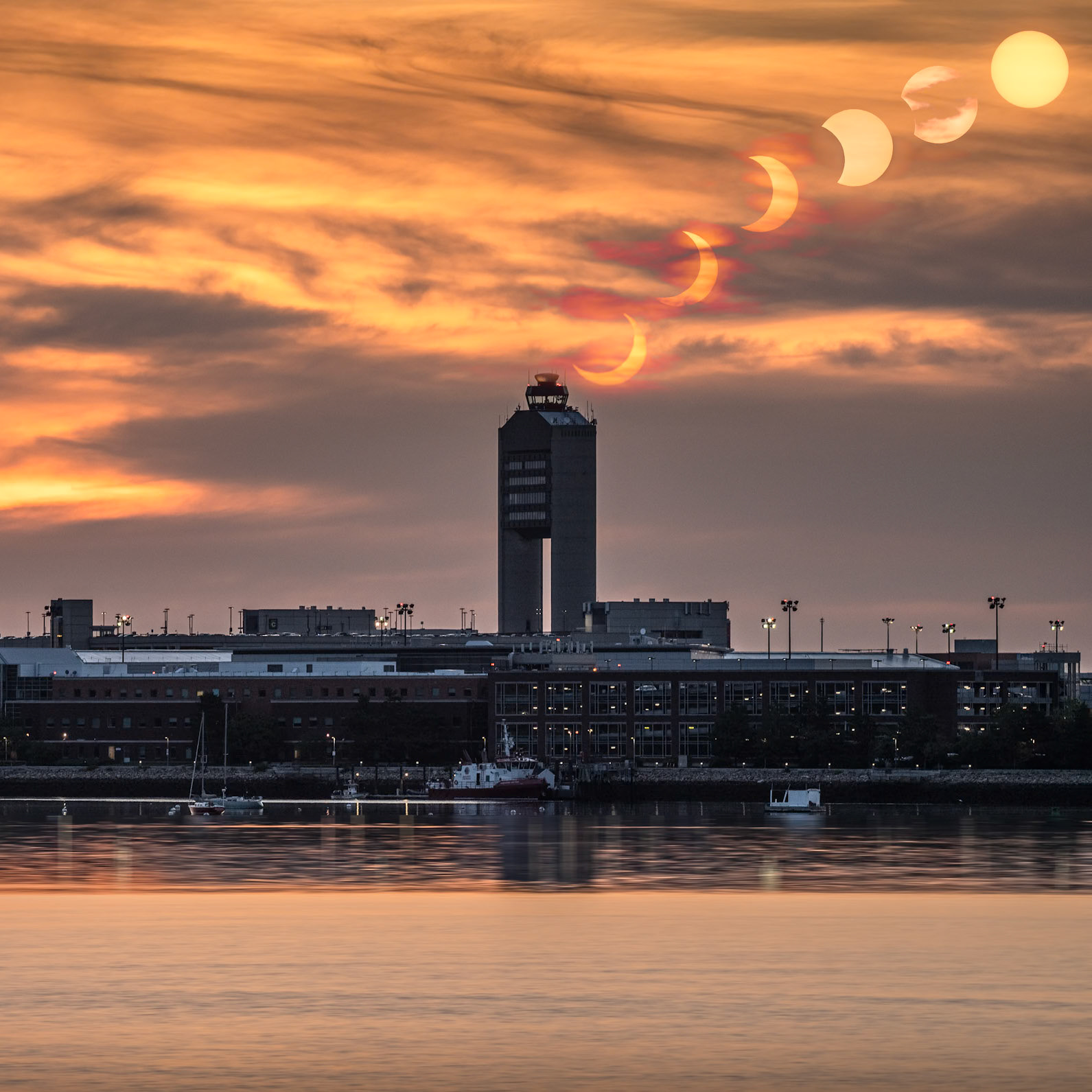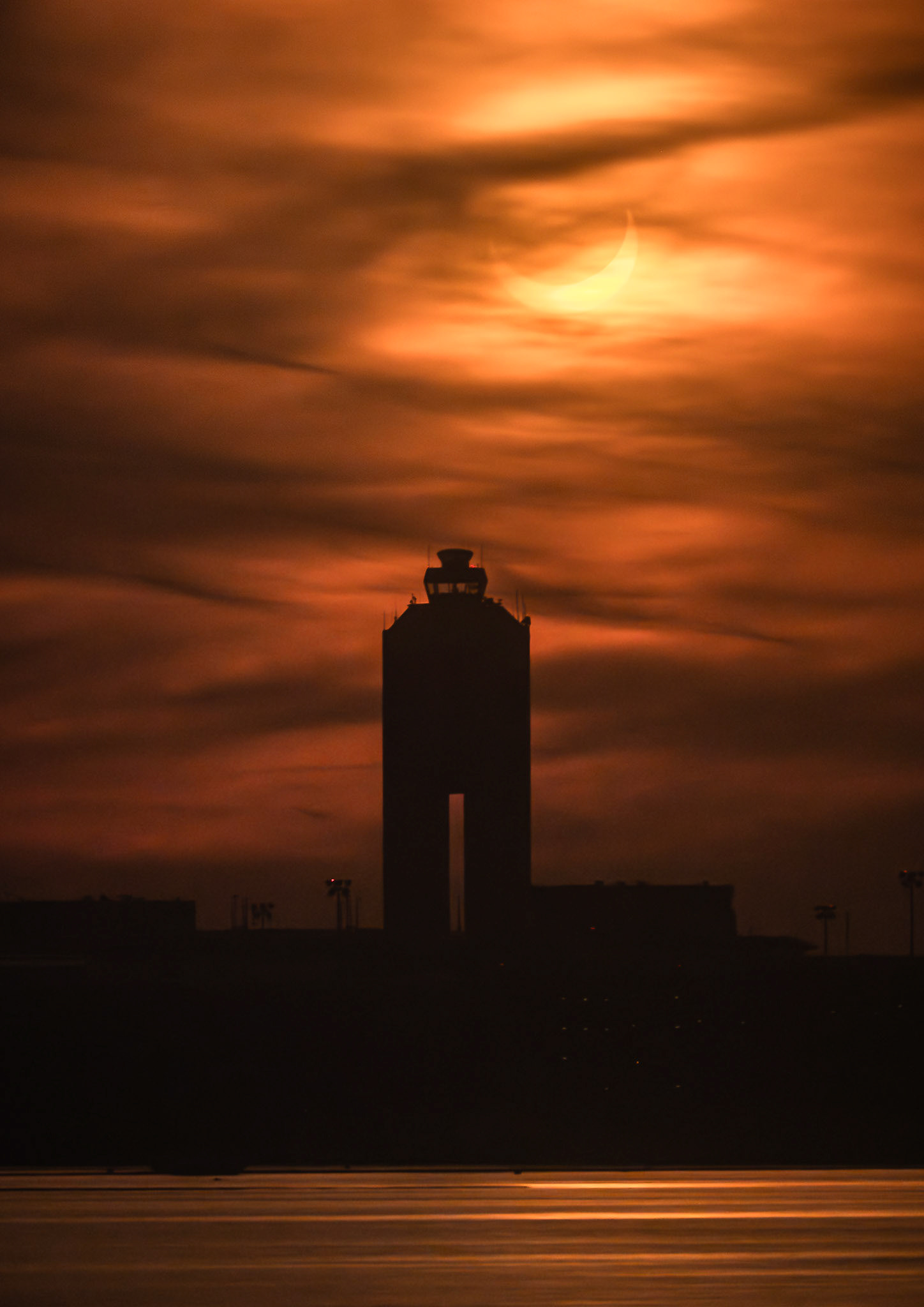 During the 2017 full solar eclipse, outside the sun's shadow, 12 miles away, the clouds and landscape turn orange, as it would during a sunset. That is the half shadow, the area where only a partially eclipsed sun illuminates the landscape.